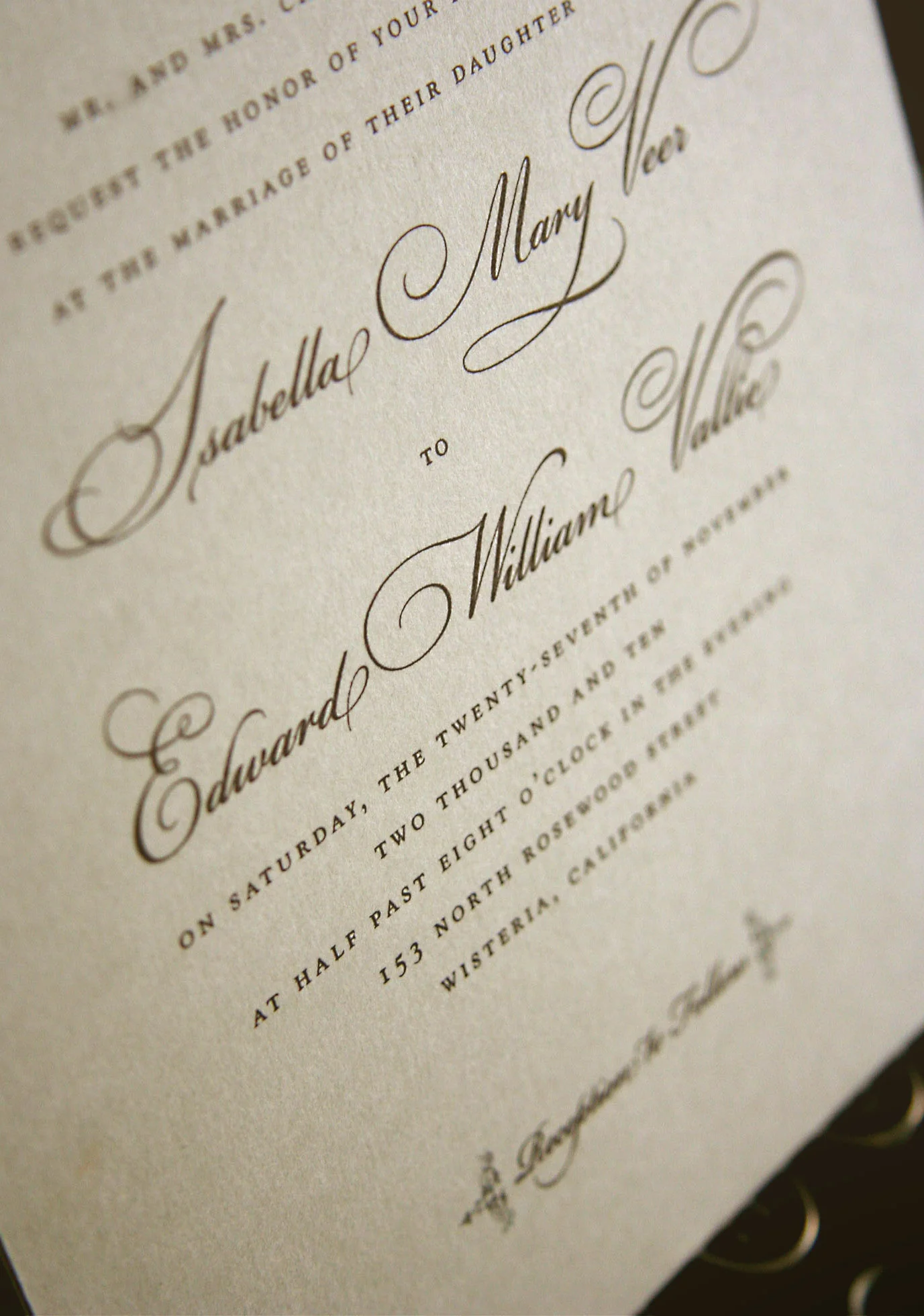 The estimate will be based on quantities, materials used and what printing process we feel would best compliment your invitation style.